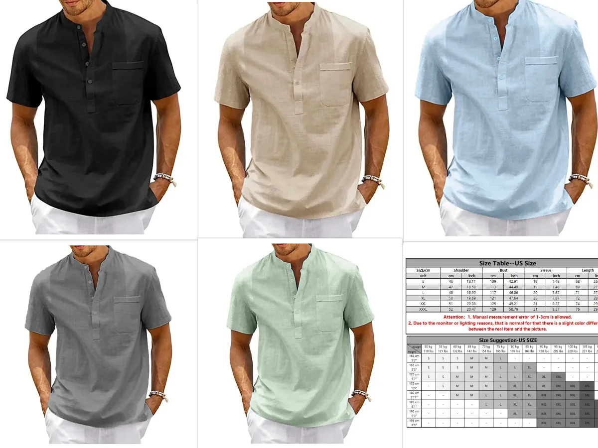 قميص رجالي كاجوال قطني ، مريح، صيفي